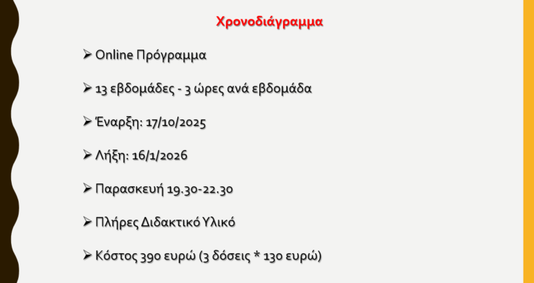 Έναρξη: 6/10/2025-Δευτέρα 20.00-22.00