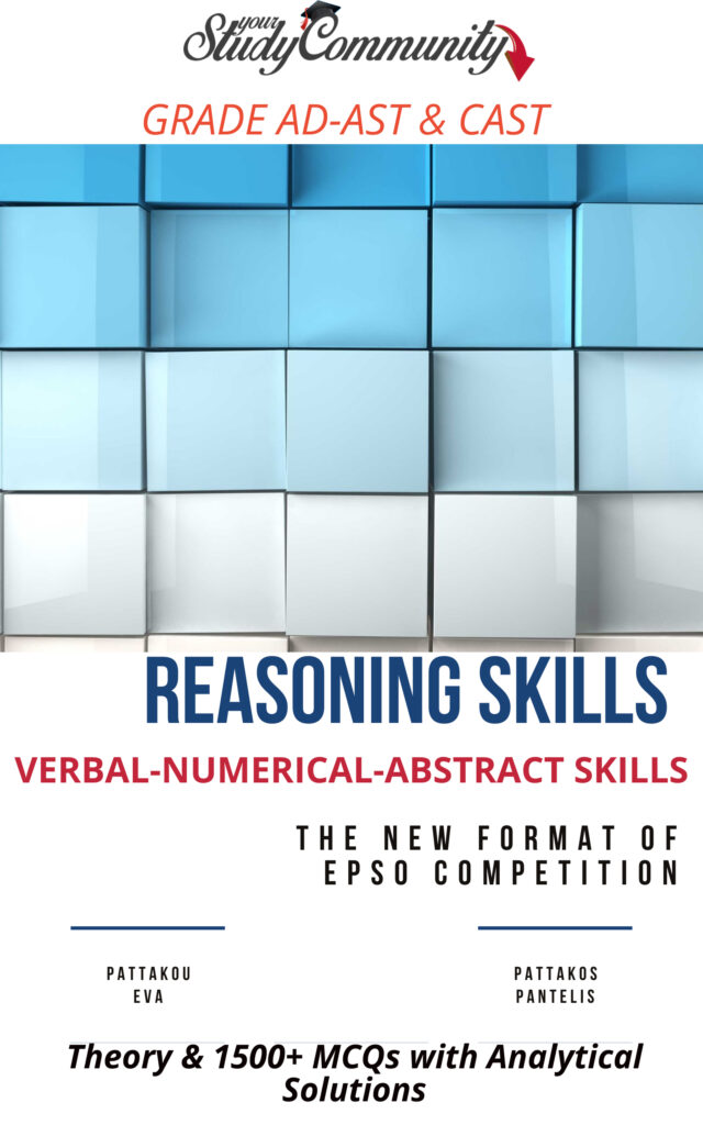 Το Reasoning Skills είναι ένα ολοκληρωμένο e-book προετοιμασίας για διαγωνισμούς τύπου EPSO και γενικές ευρωπαϊκές ή δημόσιες εξετάσεις. Συνδυάζει στρατηγική, μεθοδολογία και στοχευμένη εξάσκηση για τα τεστ λεκτικής (verbal) και αφηρημένης σκέψης (abstract), καλύπτοντας παράλληλα βασικές οδηγίες για τα επόμενα στάδια της διαδικασίας.